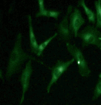 Reorientation of mouse embrionic fibroblasts during 1 hour of stretch. Image was taken before and after stretch. The stretch was horizontaly applied while cells reoriented perpendicular to the stretching direction in order to establish an optimal internal stress through accumulation of stress fibers in orientations that avoid rapid changes in length.